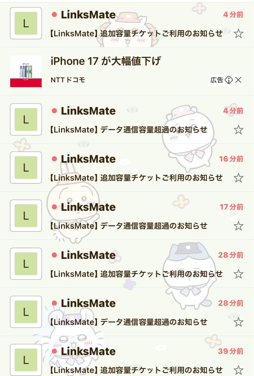 リンクスメイトが通信量のラスト1/3(10G)を100mのチケットで順次補充するからバカみたいな事になってる