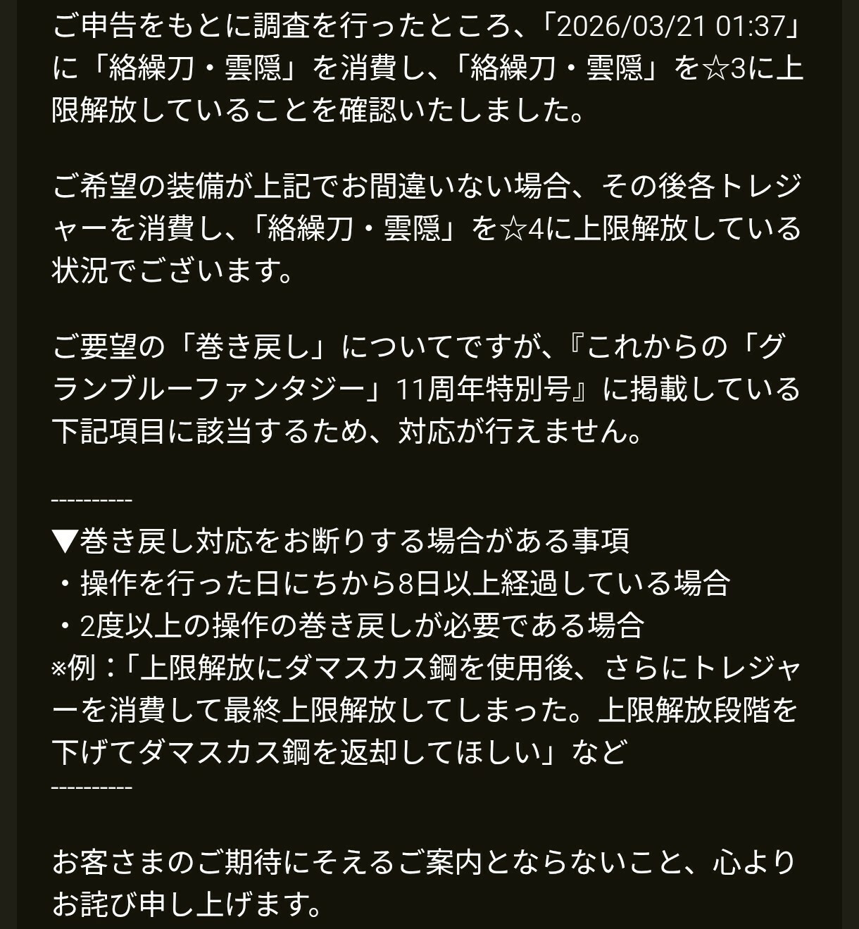 しかしまぁ、お問い合わせから24時間も経ってないのに回答いただけたのは本当に頭が上がらないです余計に自分のアホさに悲しくなりますが