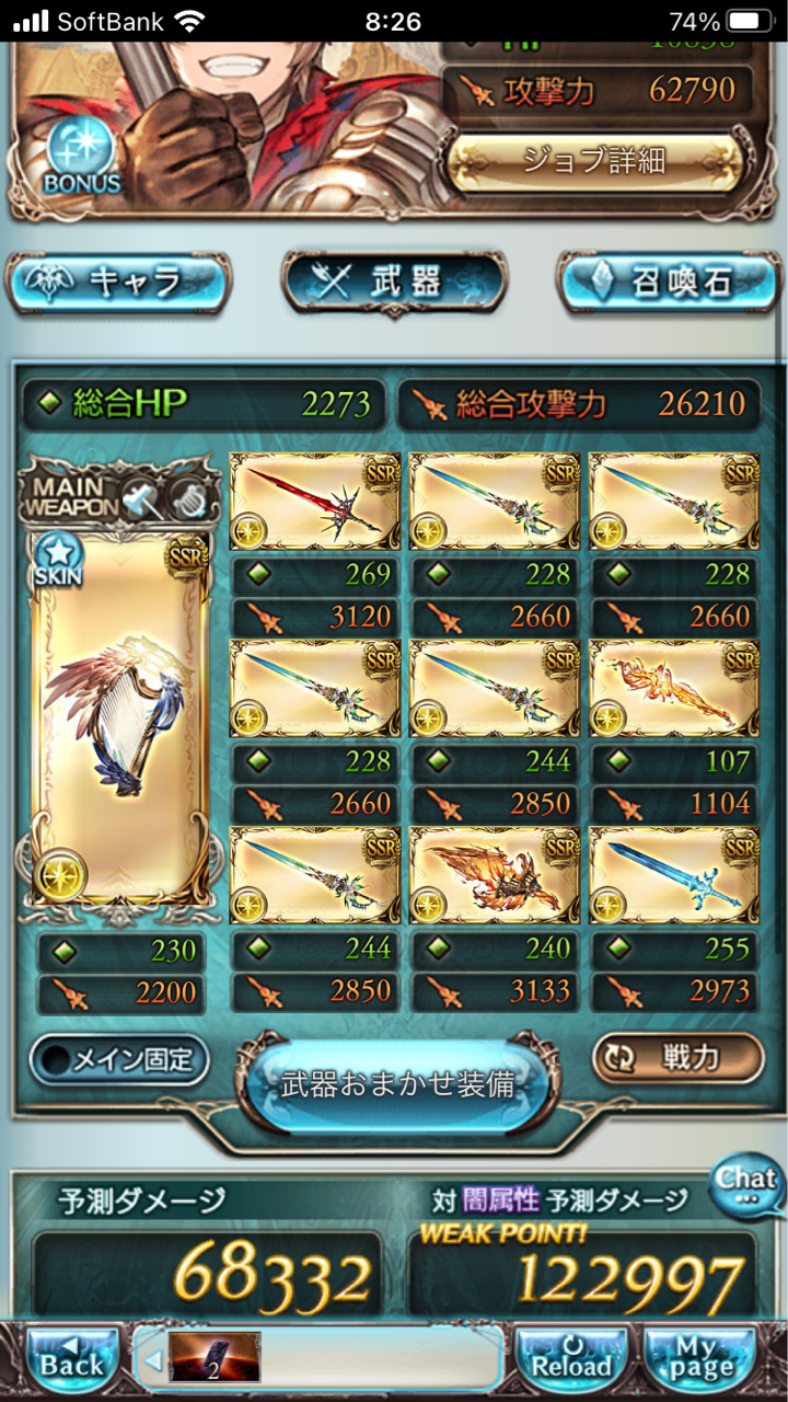 あ、編成同じ画像だったわ。slv15のシュバ剣(中段左)を無凸光の柱に変えたのが左の効果量