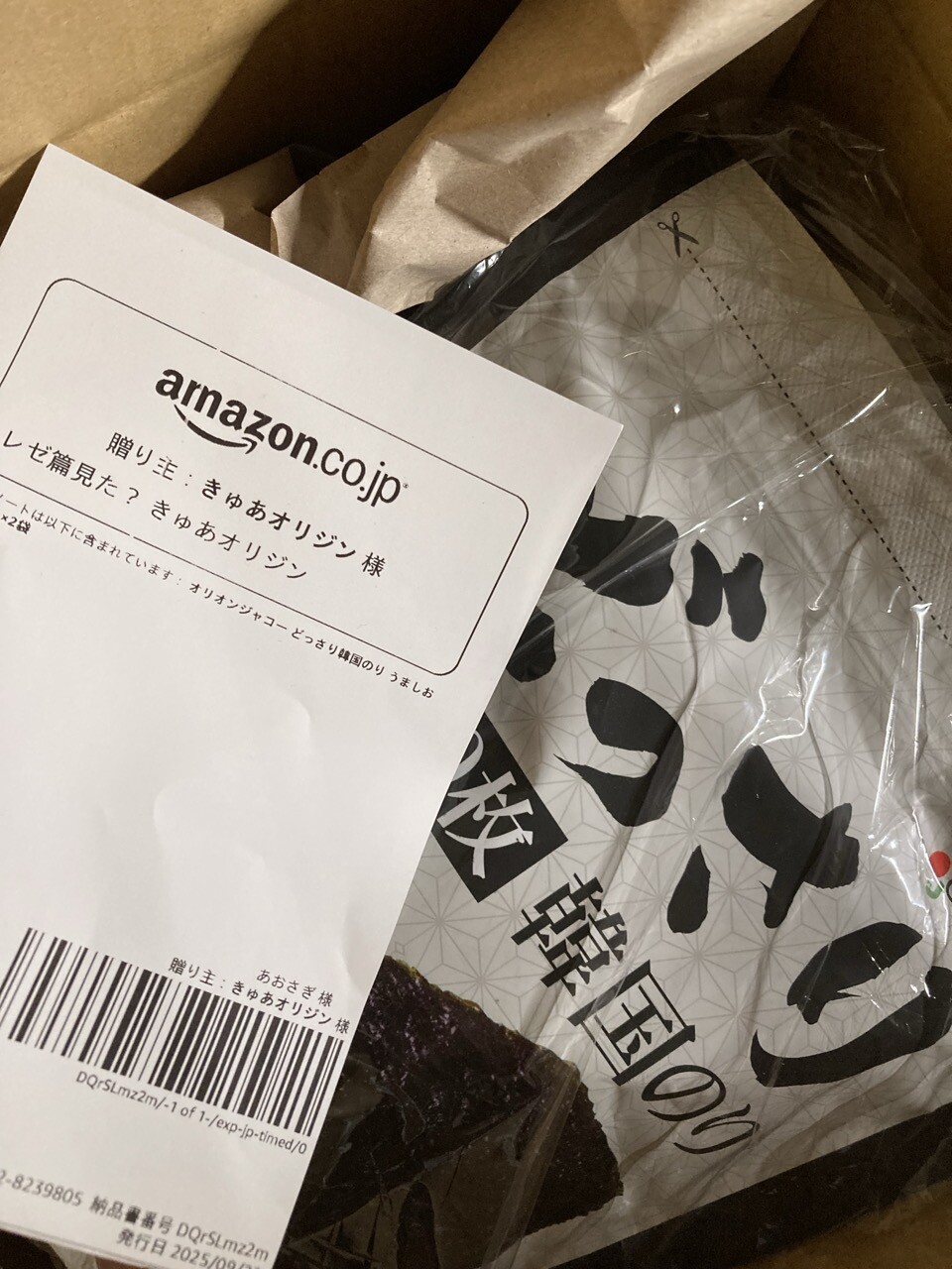 にオリジン化したキュアさんから韓国のりいただきました!あざす!連結鋸男は見てません!