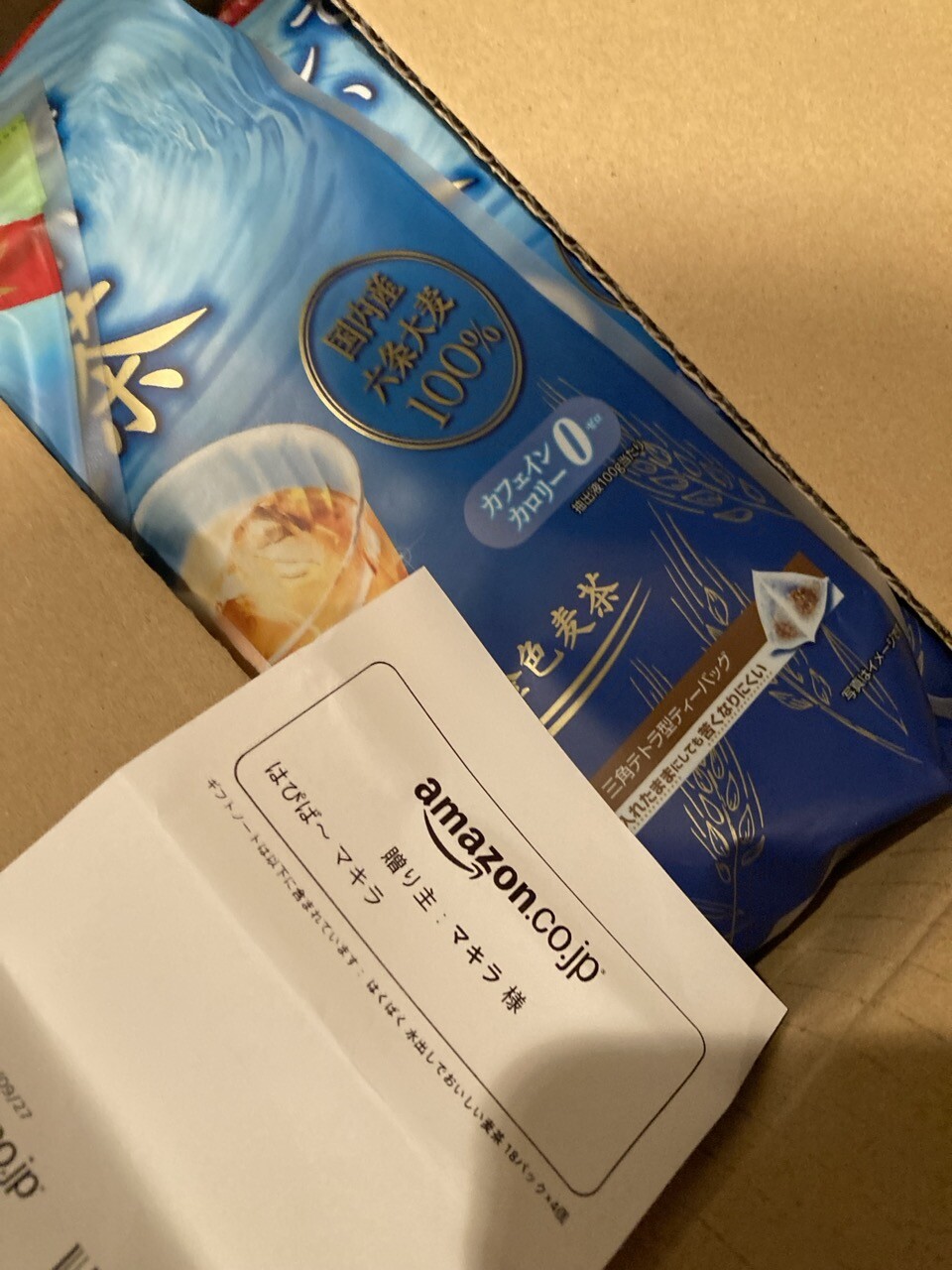 マキラから麦茶もらった!ありがとう〜いったい誰からかわからないのんな