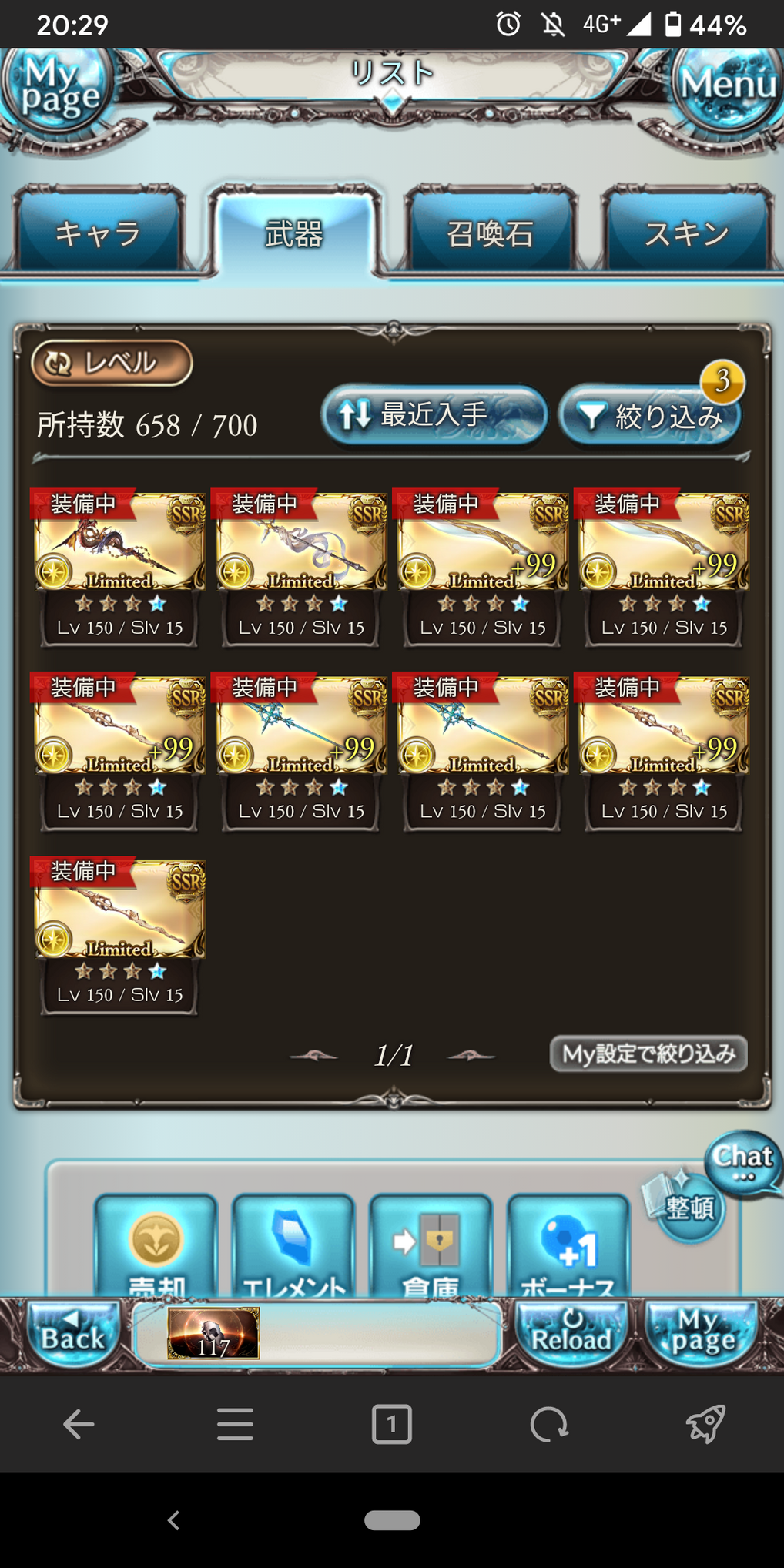 一番最初に移行しただけあって使ったダマの数と持ってるリミ武器の数が多い