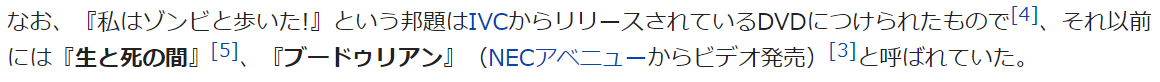 私はゾンビと歩いた!っていうゾンビ映画がその前はブードゥリアンってタイトルであったらしい