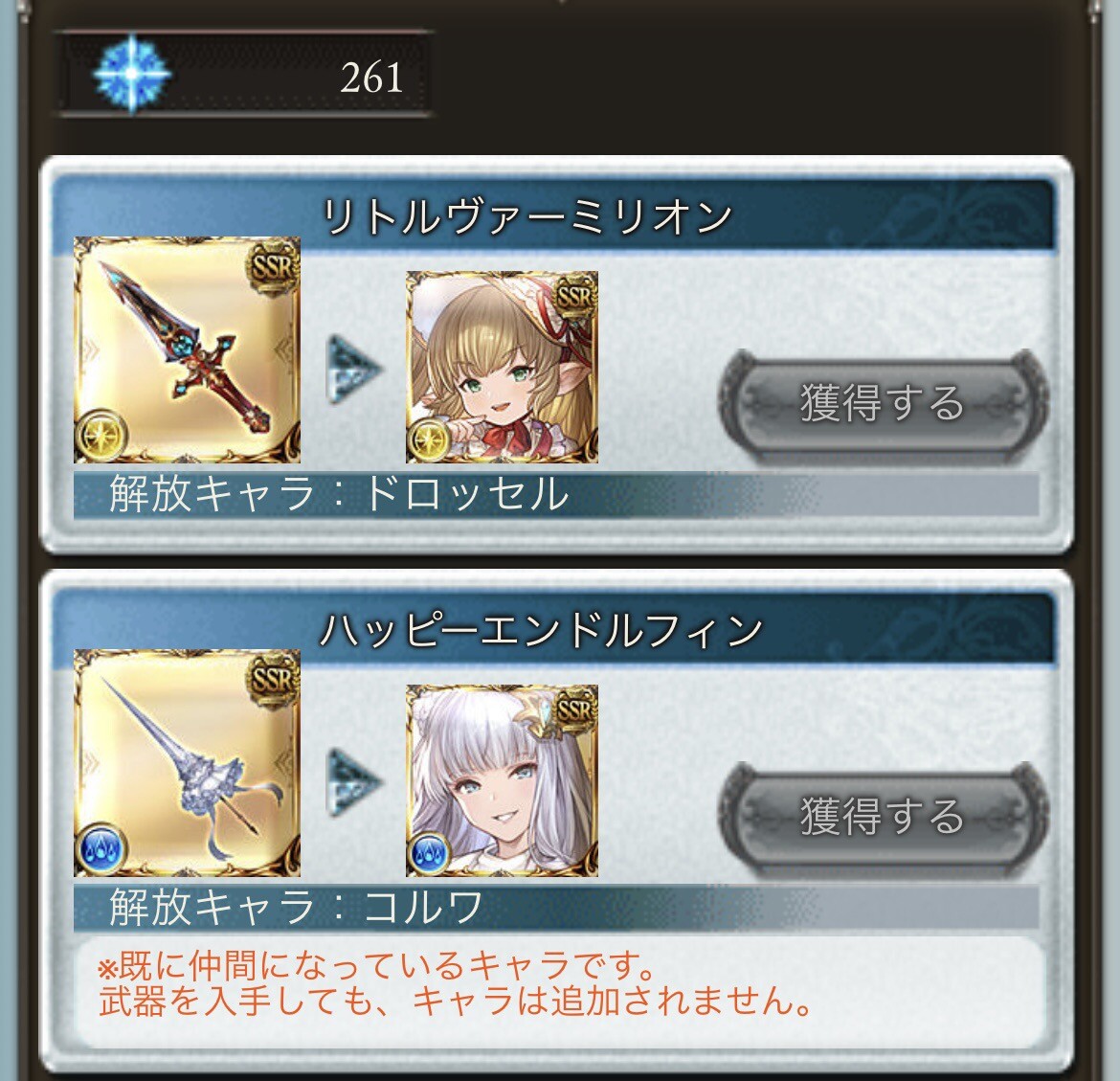 武器・キャラ(ケージ)ミュルグレス(ケージ)アークゥイバス・ラフィネス(闇ジェシカ)スカイエース(ケージ)クリムゾンスケイル(ケージ)ギガントブレイダーエーケイ・フォーエイ(ケージ)炎威の翼鎌(ケージ)一期一振(ケージ)インフェルノリークスハッピーエンドルフィン(水コルワ)