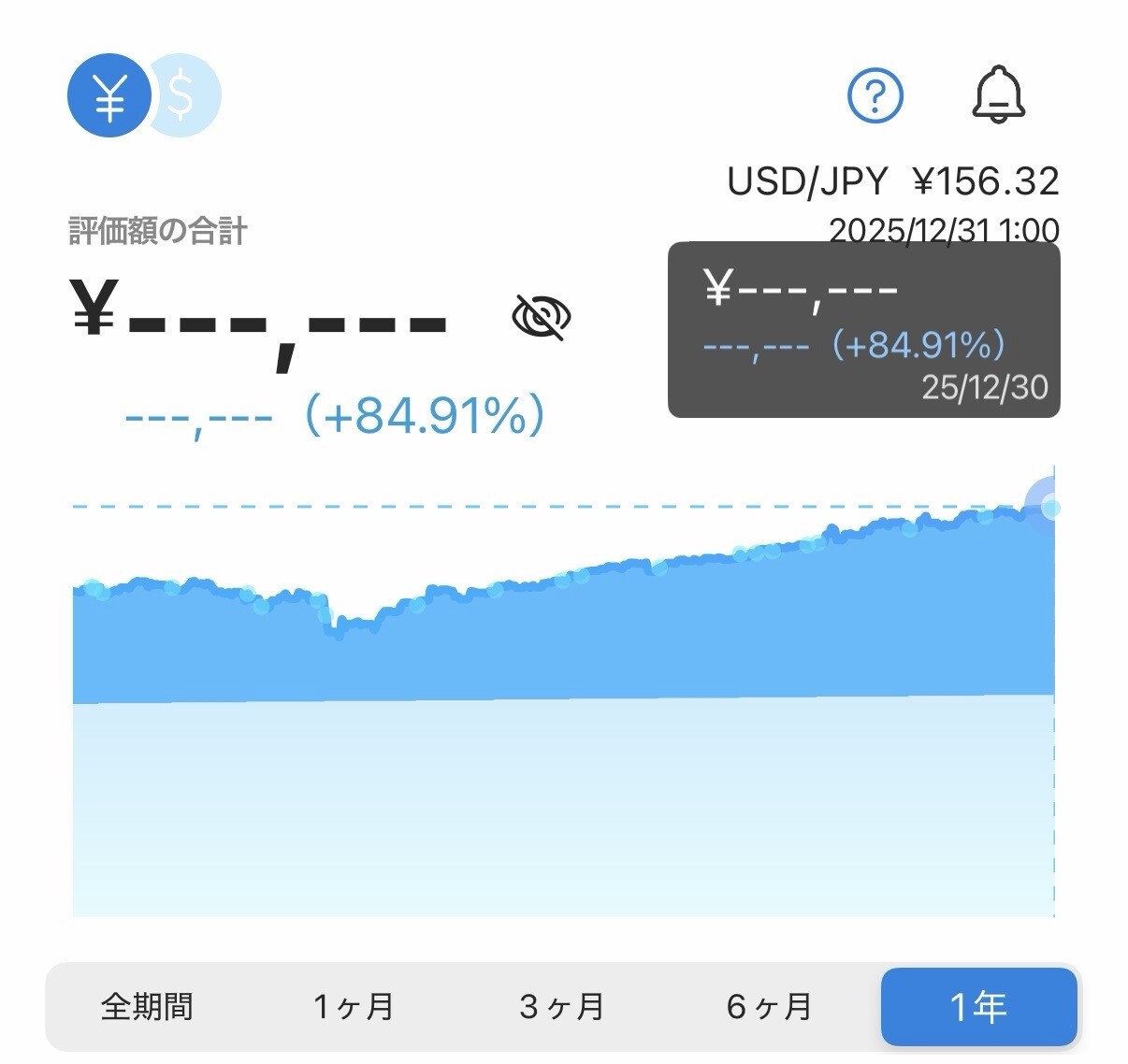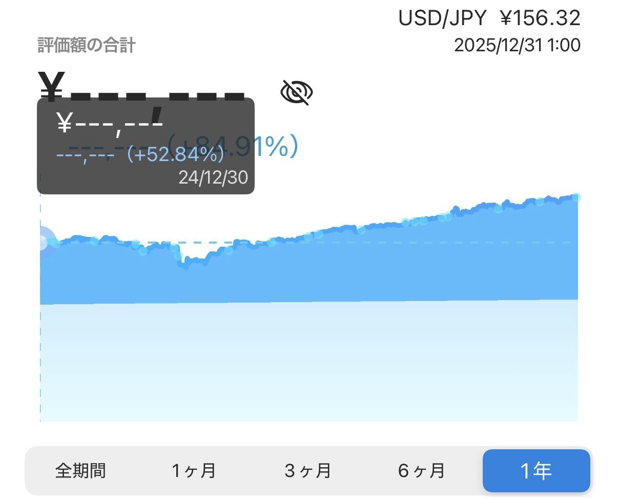 今年は4月に下落があったから水準まで戻るのは怪しいな と思っていたけど、すぐ戻ったのもあって結果としては元本昨年比+30%以上 複利効果様々