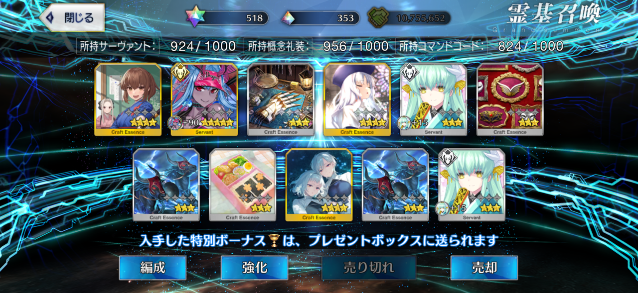 ハマったわ〜 出た時の10連☆5 3枚抜きしたけど