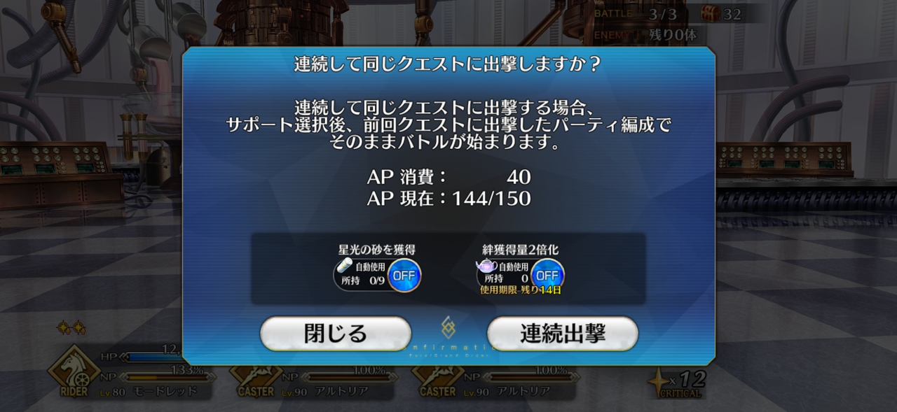 終わった疲れたー 全鯖いてもイベ配布の特攻チョコの分があるからなのか1個余るね