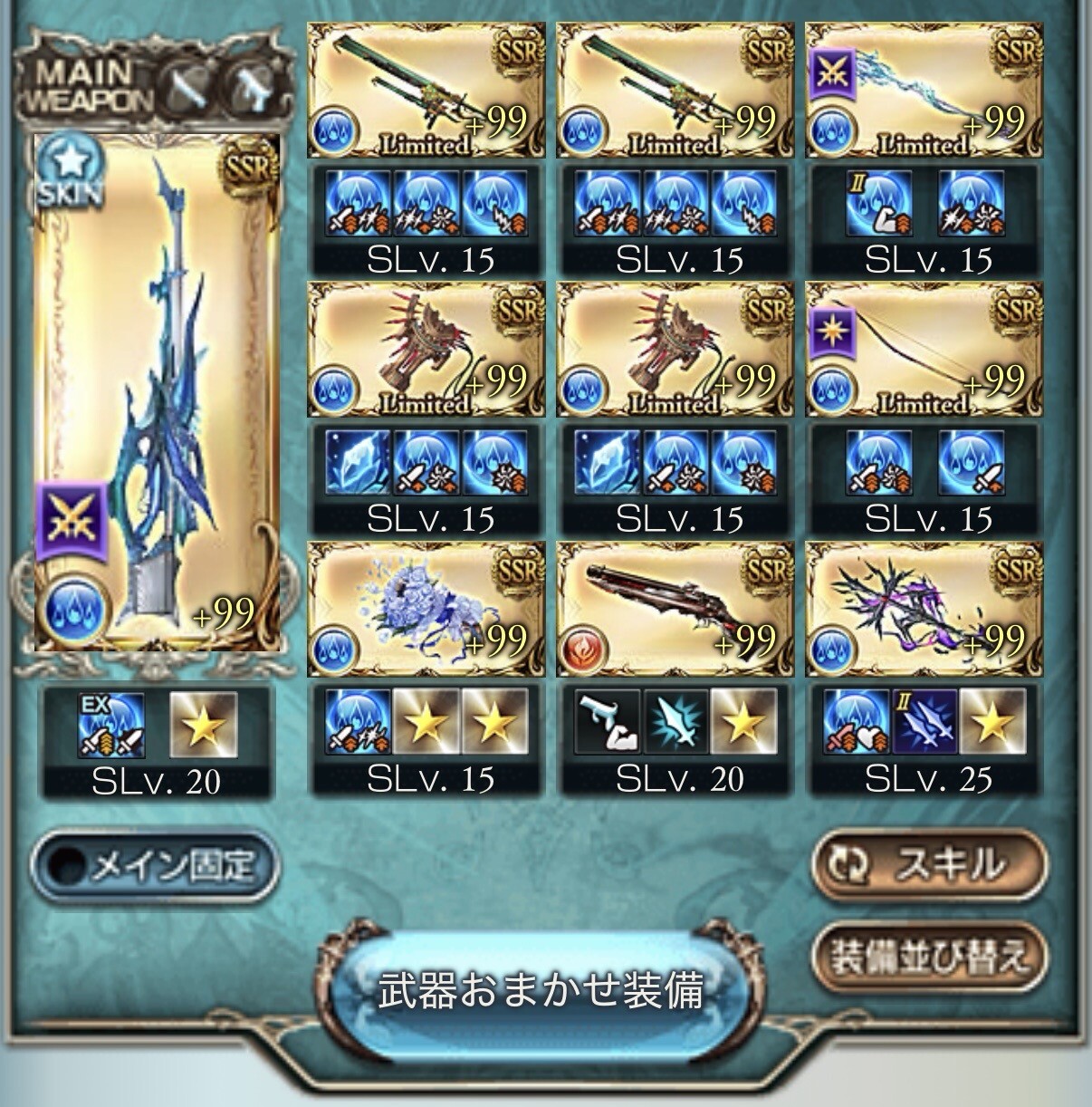 主にアビと石調整 武器はオクタ刀が2本あるのでちょっと高め