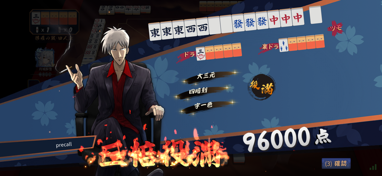 本当は親ツモで144000点だけど特殊ルールだから2人から48000点