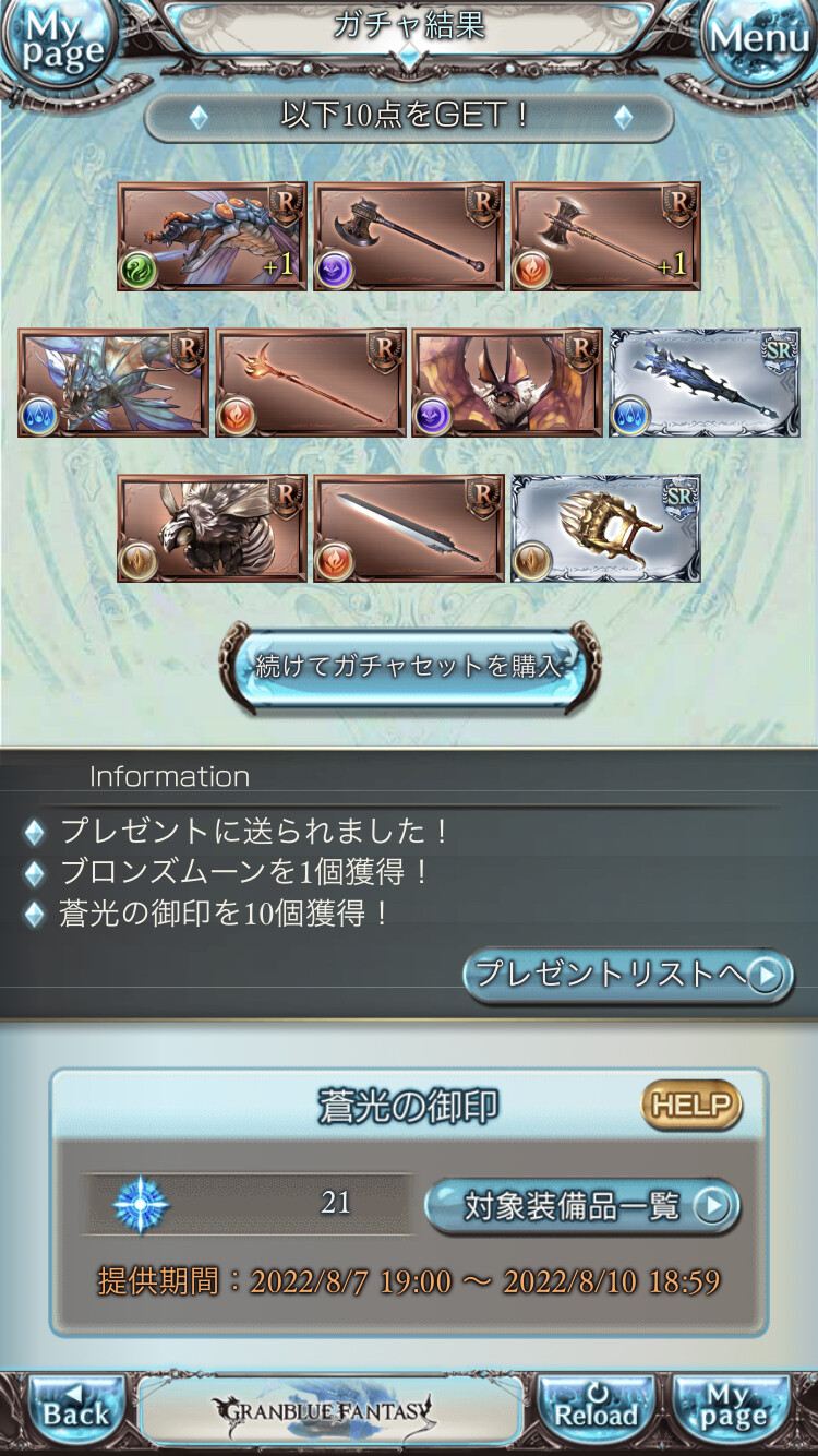 やったぜグラブル以外のガチャ運はそこそこなんだがなぁ…
