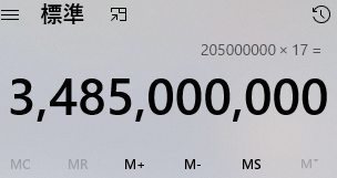 1時間12回を17時間として20億…