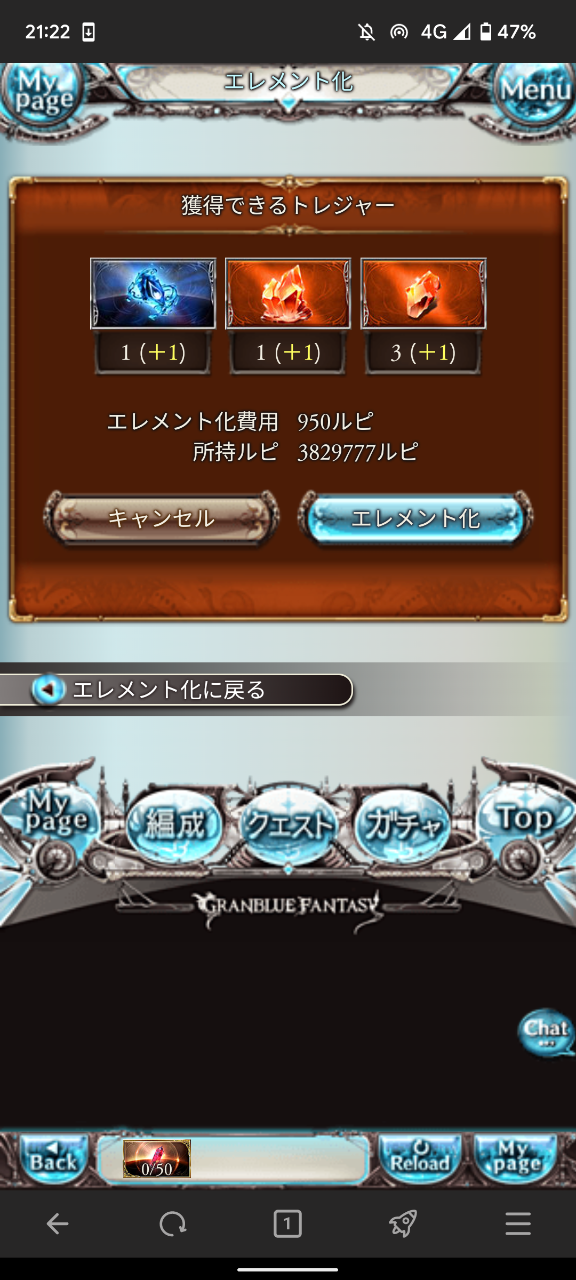 ガチャ石をエレメントしてたがそれでも足りないなぁ