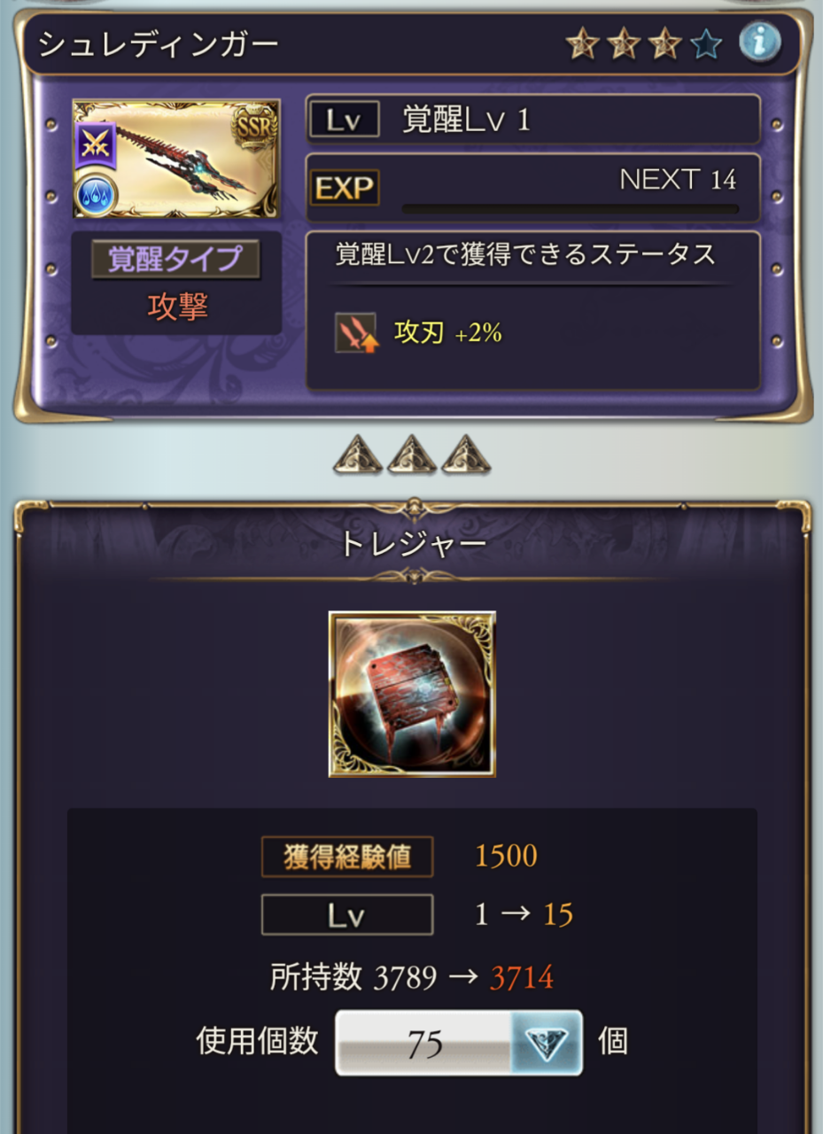 覚醒レベルの引き上げということは武器凸上限自体はそのままか覚醒レベル15までに使う素材数が75個レベル20で必要経験値2000としておよそ100個、多くて見繕って3000だとしても150個ぐらいかな?
