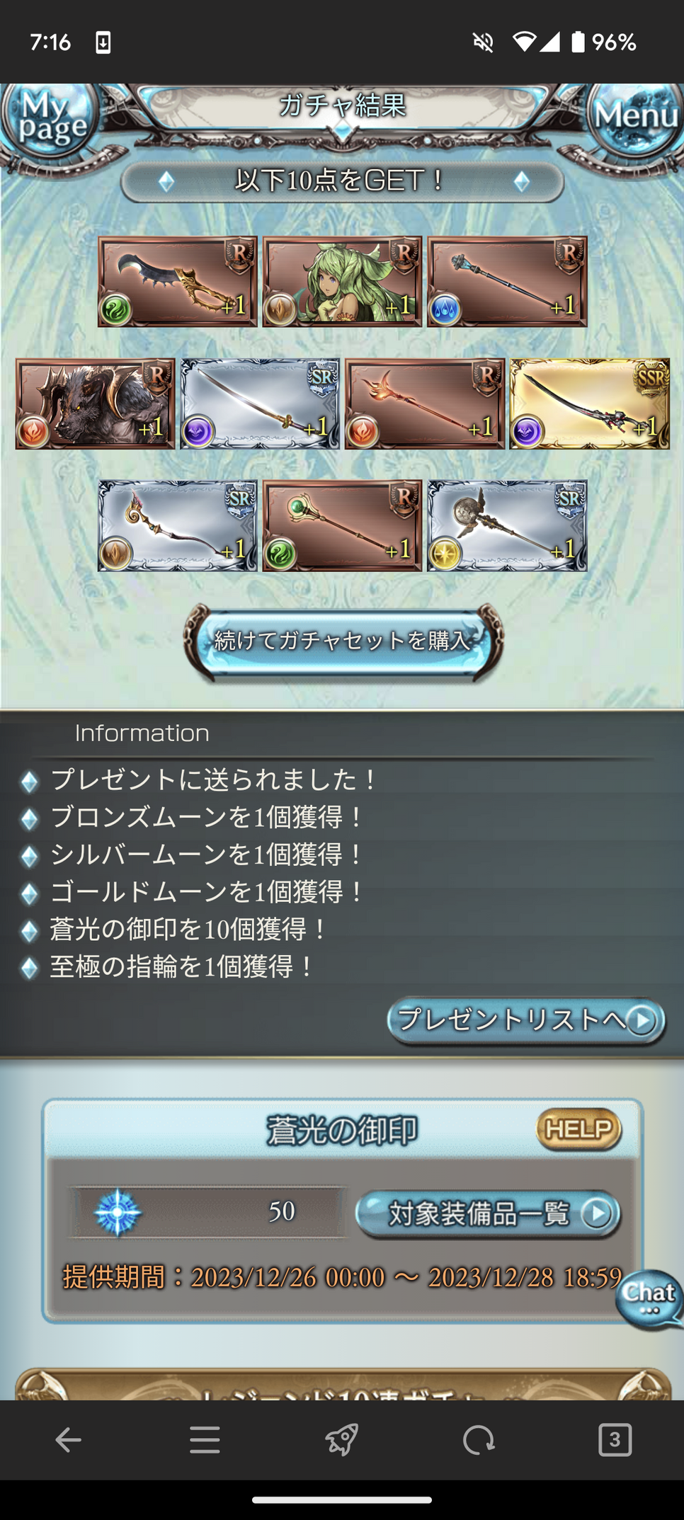 ムゲン剣2、リミゼタ槍2、終末技工、ベネ2