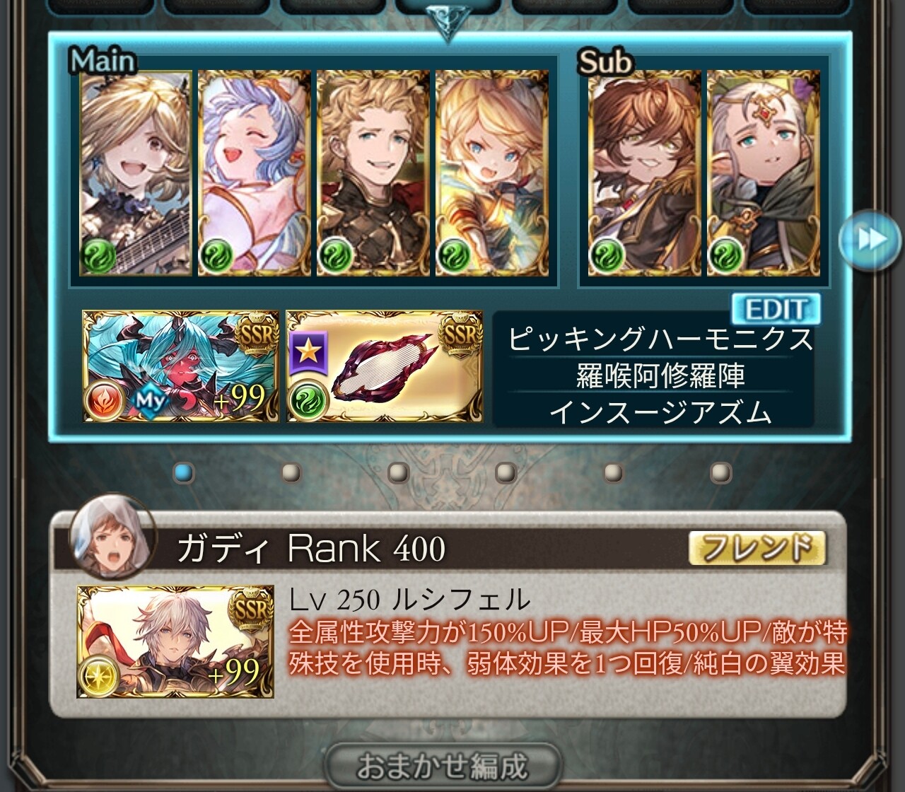 よく分からん金ピカ禁忌は動画の編成をパク…参考にしたコレでフルオート行けたべオメガは奥義ゲージ上昇量アップ