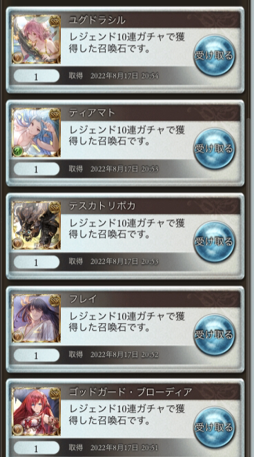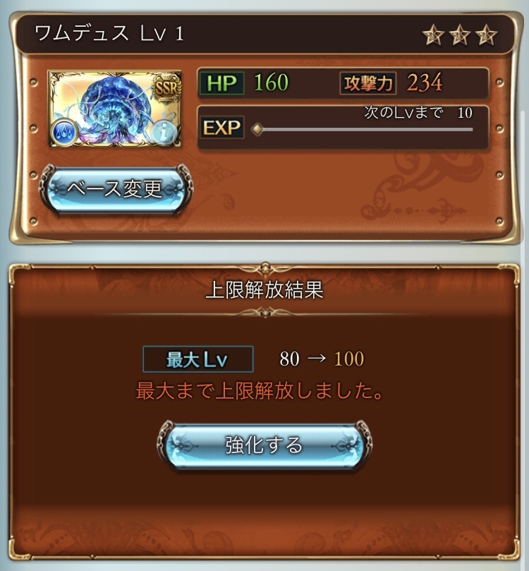 天井途中で出たSR召喚石で欠片が集まったので解放水2人なんとか間に合いました(なお110より後)