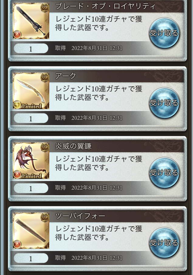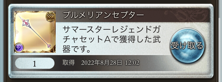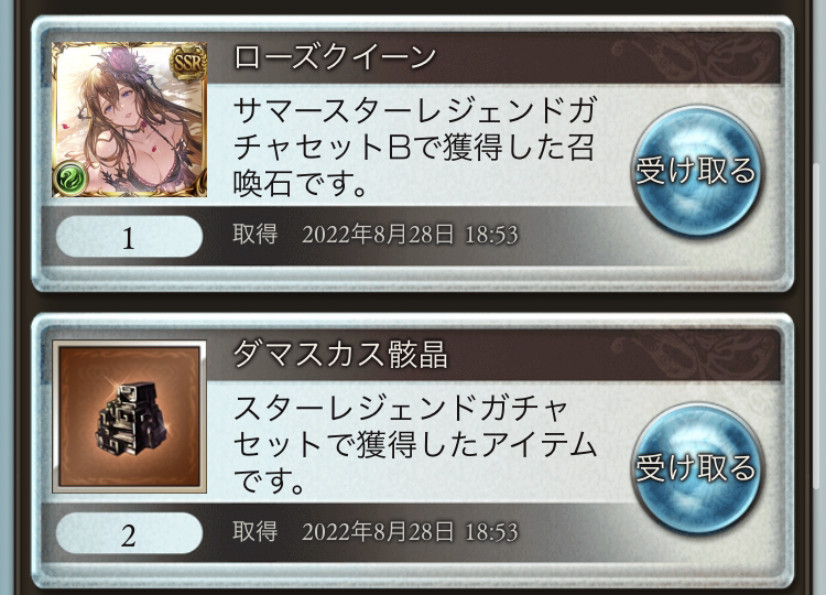 討伐章19時までに200枚集め切れなかったのでSR以上確定チケット2枚だけ引いた結果これは強い
