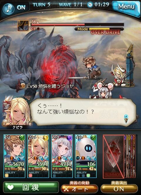 6の倍数ターンで60%踏んで即オバチェ試練を消しつつ抜錨を速攻下げるのが鍵と見た(Lv0で弱点被ダメ2k弱にまで減)