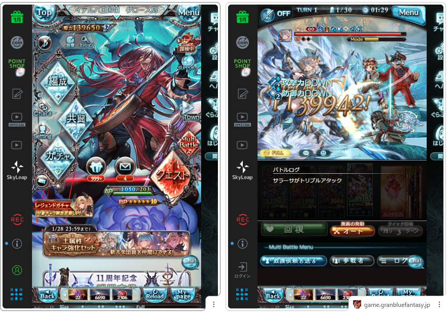 タブビューで2面グラブルこんな感じで今してる